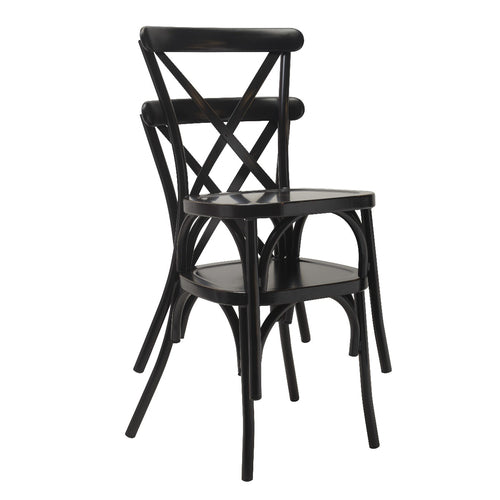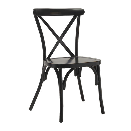 Colmar Side Chair, indoor/outdoor use, stacking, cross back, aluminum back and seat, fully welded aluminum frame, gunmetal powder coat finish, non-marring plastic glides