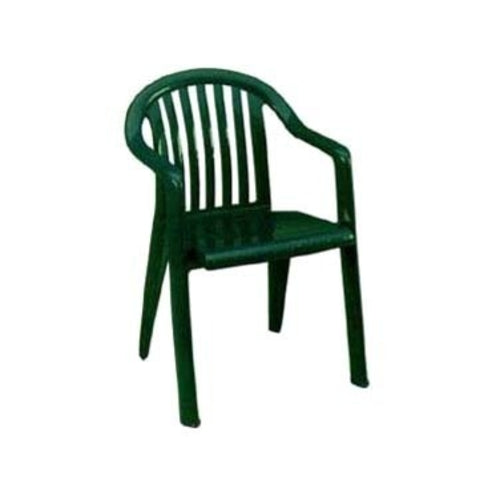 Miami Lowback Stacking Armchair, slat back, designed for outdoor use, open back with flexible slats, one-piece molded UV resistant resin, Amazon green, Made in USA (priced per each, packed 4 each per case)