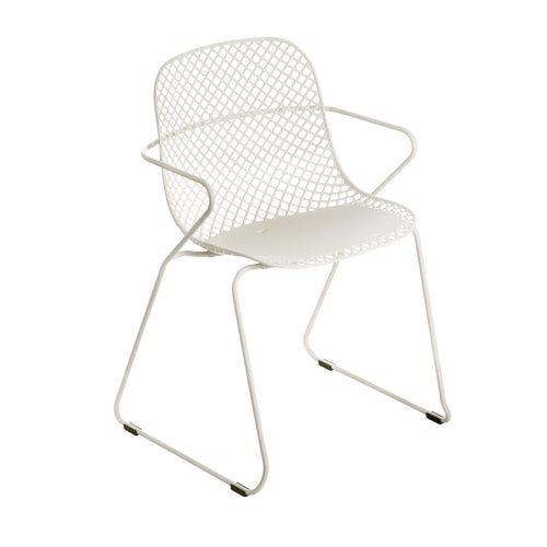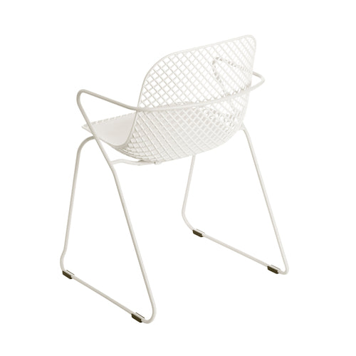 Ramatuelle '73 Armchair, stackable, lattice design resin back, solid resin seat, powder-coated steel legs UV and weather resistant, ASTM rated, designed for indoor/outdoor use, creme absolut , Made in China (price per each, packed 4 each per case)