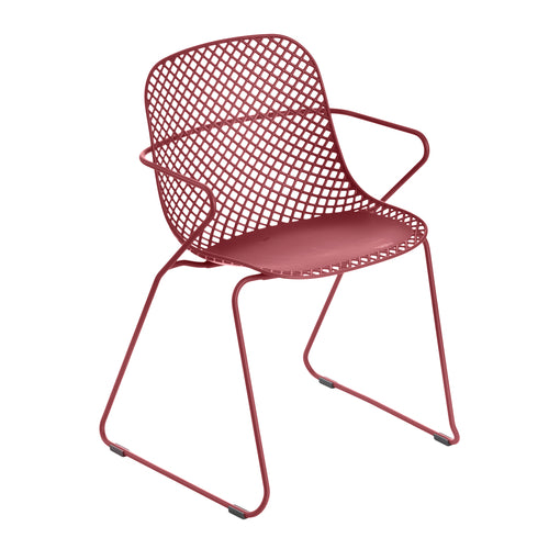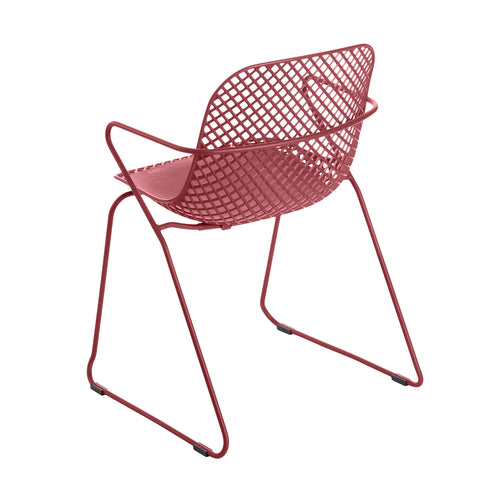 Ramatuelle '73 Armchair, stackable, lattice design resin back, solid resin seat, powder-coated steel legs UV and weather resistant, ASTM rated, designed for indoor/outdoor use, rouge bossa nova, Made in China (price per each, packed 4 each per case)