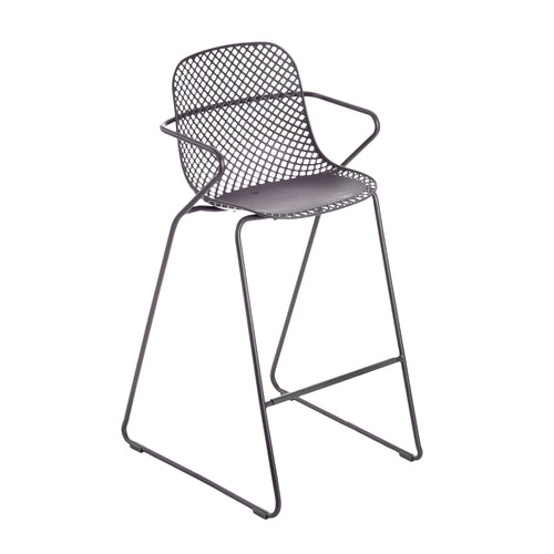 Ramatuelle '73 Barstool, stackable, lattice design resin back, solid resin seat, powder-coated steel legs, footrest, UV and weather resistant, ASTM rated, designed for indoor/outdoor use, gris pavement, Made in China (price per each, packed 2 each per case)