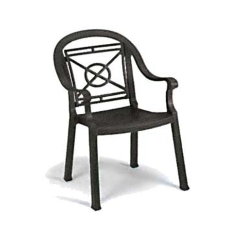 Victoria Classic Stacking Armchair, designed for outdoor use, contoured back, Kevring® resin with wrinkled metal texture finish, 2"x 2" legs, footpads, charcoal, Made in USA (priced per each, 4 per case)