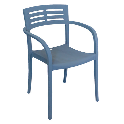Vogue Stacking Armchair, indoor/outdoor use, contoured, slotted resin back, resin seat and frame, UV resistant, recyclable, denim blue, Made in USA (priced per each, packed 4 each per case)