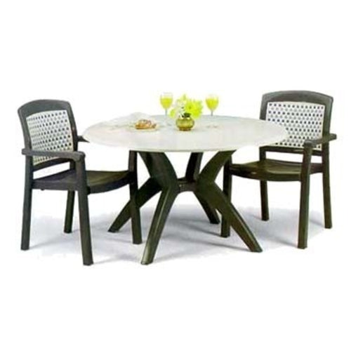 Ibiza Outdoor Table, 46" round, with umbrella hole, UV resistant, resin, white, Made in USA