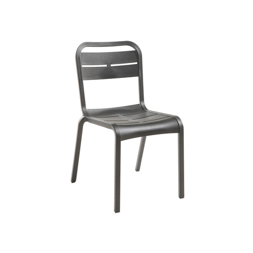 Cannes Stacking Side Chair, indoor/outdoor use, contoured, slotted resin back, resin seat and frame, UV resistant, recyclable, ASTM rated, charcoal, Made in USA (price per each, packed 18 each per case)