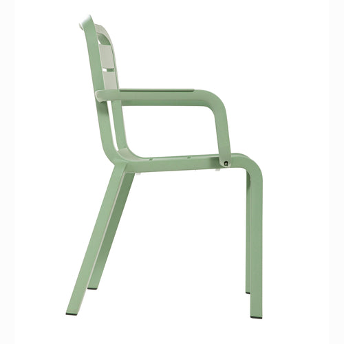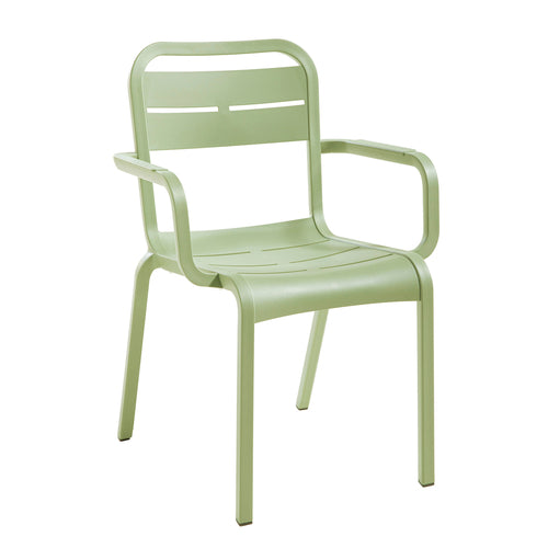 Cannes Stacking Armchair, indoor/outdoor use, contoured, slotted resin back, resin seat and frame, UV resistant, recyclable, ASTM rated, sage green, Made in USA (price per each, packed 16 each per case)