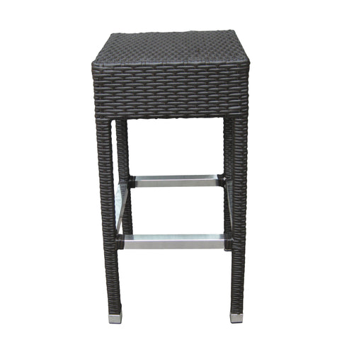 Gama Barstool, outdoor use, backless, synthetic espresso weave seat and back, aluminum frame, with footrest