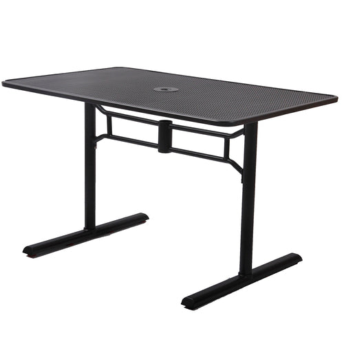 Table, rectangular, 30" x 48", dining height, designed for outdoor/indoor use, mesh top, with umbrella hole & base