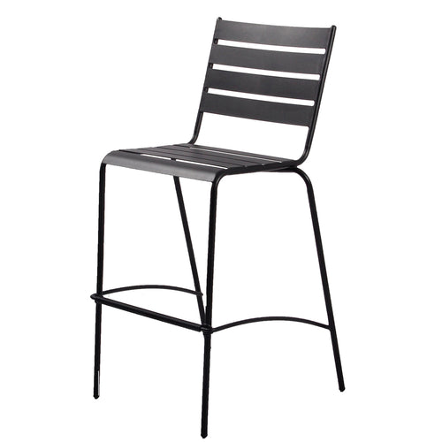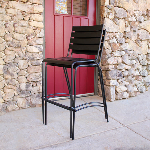 Monaco Bar Stool, stackable, armless, designed for outdoor/indoor use, ladder back & seat, tubular steel frame, footrest, e-coated powder finish