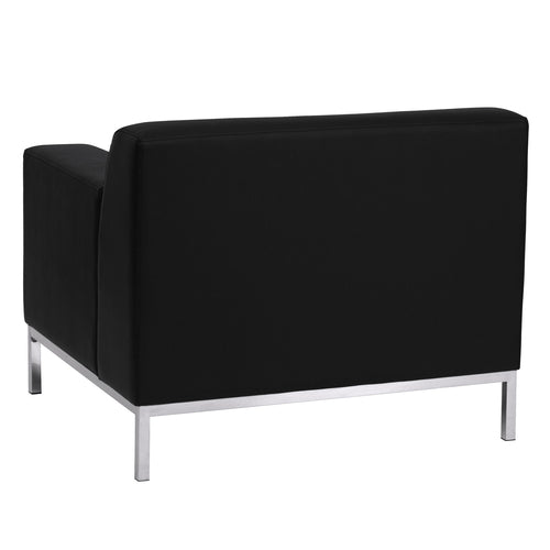 Hercules Definity Series Chair, LeatherSoft upholstery, straight arm design, fixed seat cushion, line stitching throughout, CA117 fire retardant foam, integrated stainless steel legs and frame, black (assembly required) (in stock items ship within 24 hours)
