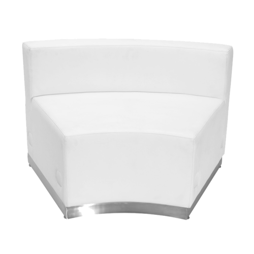 Hercules Alon Series Concave Chair, modular, LeatherSoft upholstery, taut seat and back, line stitching throughout, CA117 fire retardant foam, locking bolt connects chairs, brushed stainless steel base with adjustable floor glides, white (in stock items ship within 24 hours)