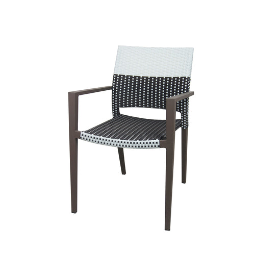 Chloe Armchair, stacking, Duraweave™ wicker back & seat, indoor/outdoor use, nylon floor glides, fully welded, espresso aluminum frame, rustproof, powder coat finish, espresso & white, stacks up to 8