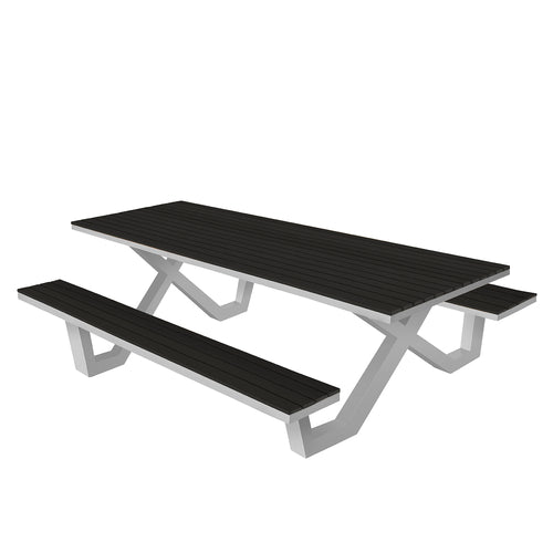 Vienna Picnic Table, 8'L, rectangular, indoor/outdoor use, synthetic Durawood™ slat table top & bench seats, UV resistant, rustproof aluminum frame, powder coat finish