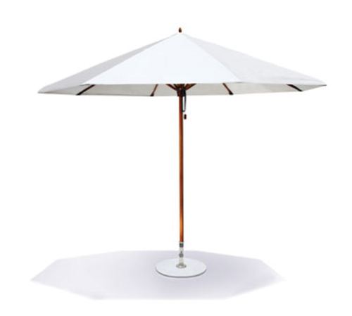 Vineyard Parasol, 9 ft., octagon top, 1-7/8" dia. mast, market style canopy, single wind vent, reinforced-strut design, solid hardwood hub with stainless steel banded bracket system, manual lift with stainless steel pin, stainless steel acorn finial, tumbled leather & linseed oil finish
