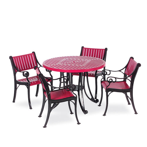 Wabash Classic Table, 48" dia. x 29-7/8"H, round, standard height, rib pattern table top, with umbrella hole, sheet metal table top, aluminum base