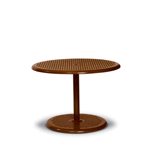 Wabash Camino Series Pedestal Table, 42" dia. x 30"H, round, standard height, solid aluminum top, with umbrella hole, 2-7/8" steel tube support, powder coat finish