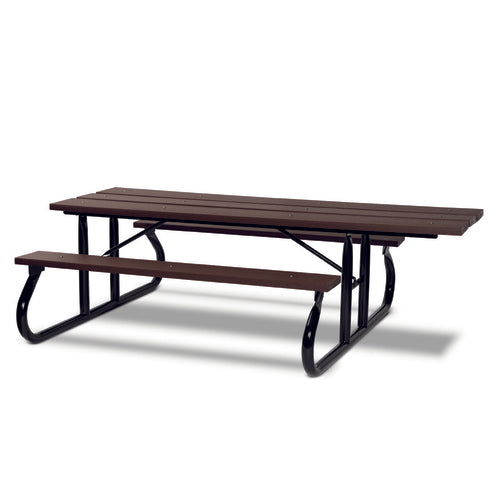 Green Valley Picnic Table, 96"W x 30"D x 30-3/8"H, PolyTuf®rectangle table top and (2) bench seats, 72"W bench seats, sheet steel frame, 2-3/8" dia. steel tubular legs, powder coat finish portable, ADA compliant