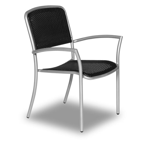 Urbanscape® Hanna Arm Chair, black polyethylene weave back & seat, stackable, 1" dia. aluminum tubular frame, powder coat finish
