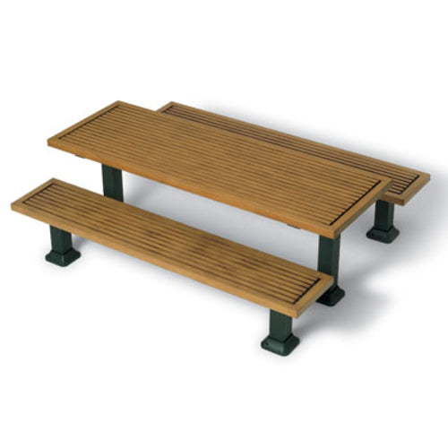 Urbanscape® Kentland Table, 86-1/4"W x 30"D x 27-1/2"H, with benches (16-1/2"D x 18"H), surface mount, includes mounting plate covers, aluminum, faux wood powder coat finish