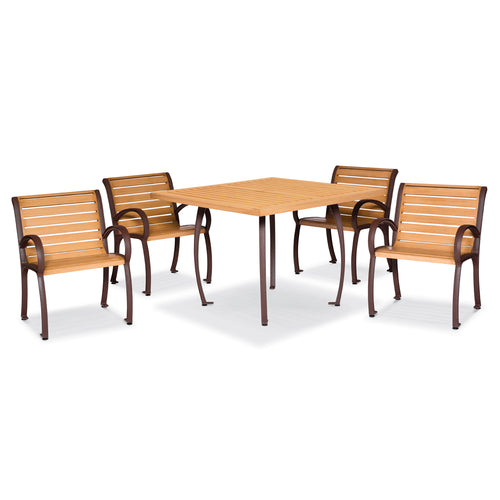 Urbanscape® Table, 36"W x 36"D x 29-3/8"H, square, slat table top, umbrella hole, (4) legs, aluminum, faux wood, powder coat finish