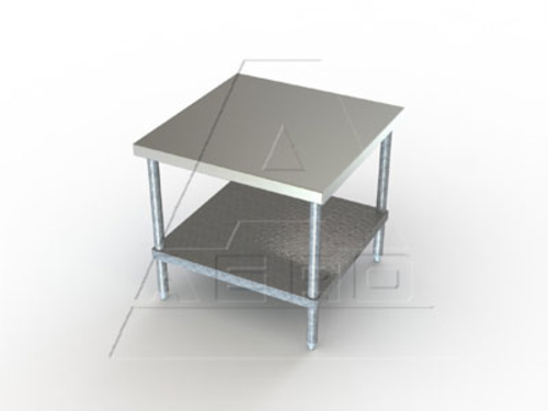Mixer Stand, open base with bottom shelf, 24"W x 24"D x 25-1/2"H, 1-7/8" turn down on (4) sides, marine edges, (2) steel box channels, 14 gauge 300 series stainless steel top, 18ga galvanized legs & adjustable undershelf, sound deadened, Aero Hemmed Safety Edge™, shipped KD, NSF
