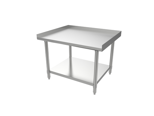 Equipment Stand, 36"W x 30"D x 24"H, 18/430 stainless steel top with 1.5" up-turn on sides & rear,18/430 stainless steel undershelf & legs, stainless steel adjustable bullet feet, NSF