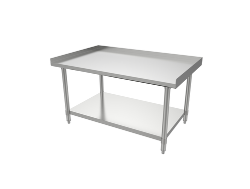 Equipment Stand, 48"W x 30"D x 24"H, 18/430 stainless steel top with 1.5" up-turn on sides & rear, 18/430 stainless steel undershelf & legs, stainless steel adjustable bullet feet, NSF