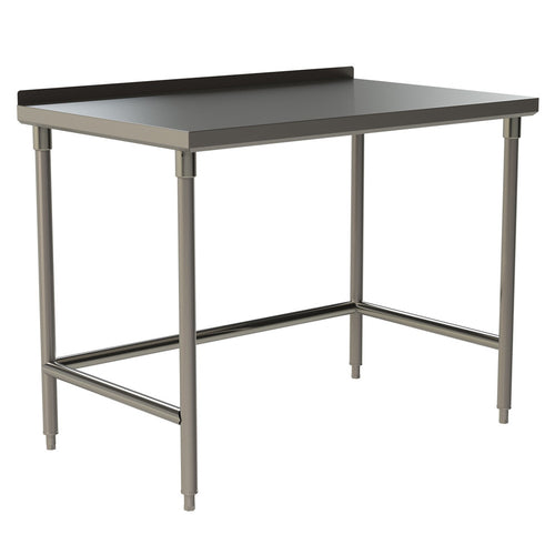 Work Table, 108"W x 30"D x 34"H overall size, 16/304 stainless steel top with 1-1/2"H rear up-turn, open base, stainless steel legs with side & rear bracing and adjustable bullet feet, NSF, Made in USA