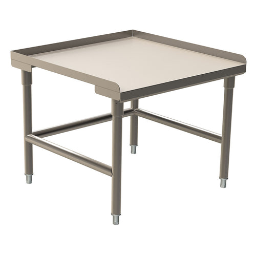 Equipment Stand, 30"W x 36"D x 24"H overall size, 14/304 stainless steel top with 1-1/2"H up-turn on rear and sides, open base with side & rear bracing, stainless steel legs with adjustable bullet feet, NSF, Made in USA
