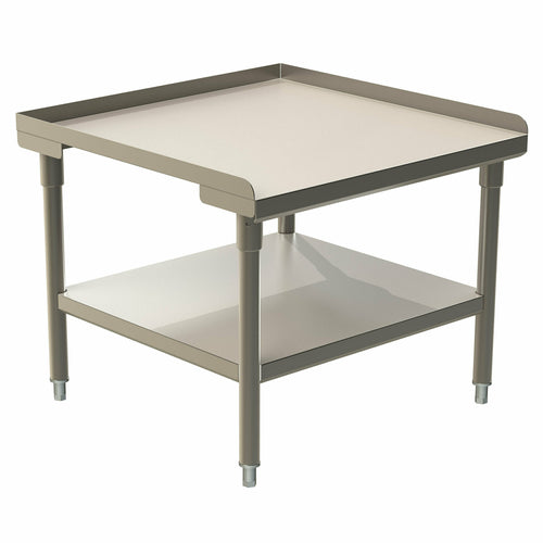 Equipment Stand, 30"W x 30"D x 24"H overall size, 14/304 stainless steel top with 1-1/2"H up-turn on rear and sides, stainless steel undershelf, stainless steel legs with adjustable bullet feet, NSF, Made in USA