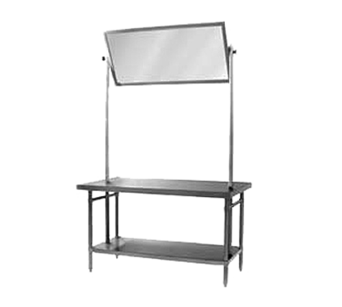 Spec-Master® Demo Table, 72"W x 36"D x 88"H, 14/304 stainless steel top, box marine edge all sides, acrylic mirror tilting frame & locking knob, stainless steel adjustable undershelf, Uni-Lok® gusset system, stainless steel legs & adjustable bullet feet, NSF