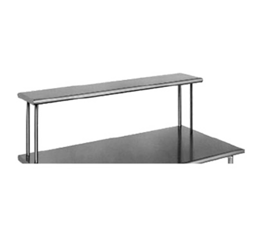 Overshelf, table mount, 120"W x 12"D x 18"H, single deck, rolled edge on front & back, turned down sides, non-adjustable, 14/304 stainless steel construction, 1" diameter stainless steel tubular base legs, shipped KD, NSF