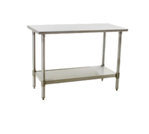 Spec-Master® Series Work Table, 120"W x 24"D, 14/300 series stainless steel top, rolled edge on front & back, adjustable 18/300 series stainless steel undershelf with marine edge, Uni-Lok® gusset system, (6) stainless steel legs & adjustable bullet feet, NSF