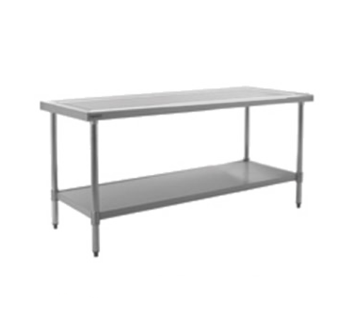 Spec-Master® Marine Series Work Table, 132"W x 36"D, 14/300 series stainless steel top, box marine edge on all sides, adjustable 18/300 series stainless steel undershelf with marine edge, Uni-Lok® gusset system, (8) stainless steel legs & adjustable bullet feet, NSF