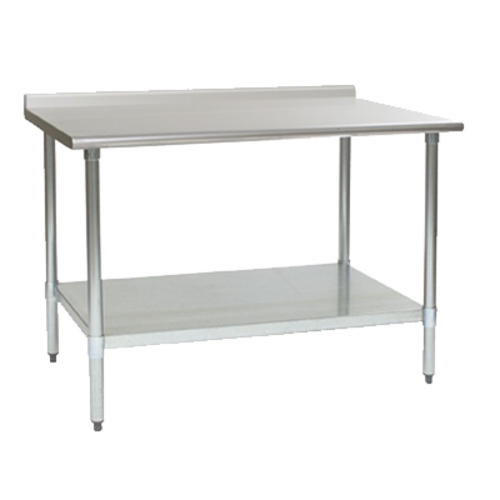 Deluxe Series Work Table, 132"W x 24"D, 16/300 series stainless steel top with 1-1/2"H rear up-turn, rolled front edge, adjustable galvanized undershelf, Uni-Lok® gusset system, (8) galvanized legs with adjustable plastic bullet feet, NSF
