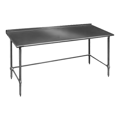 Budget Series Work Table, 120"W x 30"D, 430 stainless steel top with 1-1/2"H rear up-turn, rolled front edge, Uni-Lok® gusset system, galvanized crossrails on side & rear, (6) galvanized legs with adjustable plastic bullet feet, NSF