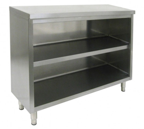 Work Table, cabinet base with open front, 36"W x 24"D x 35"H, (1) adjustable shelf,18 gauge polished stainless steel top, top reinforced with welded-on hat channel, sound-deadened between top channels, stainless steel construction, bullet feet, ETL