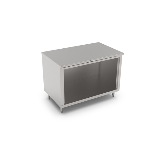 Work Table, cabinet base with open front, 36"W x 30"D, 16/300 stainless steel flat top, Stallion Safety Edge front, 18/430 stainless steel wrap, stainless steel legs with adjustable feet, NSF