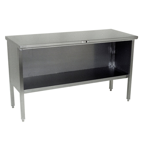 Work Table, cabinet base with open front, 108"W x 24"D, 14/300 stainless steel flat top, Stallion Safety Edge front & back, 90° turndown on sides, stainless steel base, undershelf, & 1" adjustable bullet feet, all welded set-up, NSF