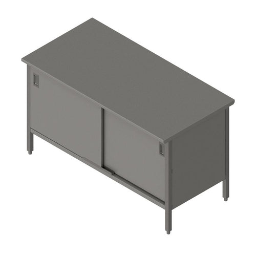 Work Table, cabinet base with sliding doors, 48"W x 30"D, 16/300 stainless steel flat top, Stallion Safety Edge front & back, 90° turndown on sides, stainless steel base, undershelf, & 1" adjustable bullet feet, all welded set-up, NSF