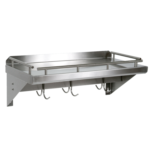 Cucina Mensola Grande Shelf, wall-mount, 36"W x 12"D, galley rail, utensil bar with (4) double hooks, 18 ga. stainless steel