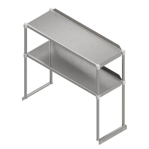 Overshelf, double, 48"W x 12"D, 16/300 stainless steel with 1-1/2" upturn on back, mounted 18" above table top, 12" between shelves, 1" stainless steel post, KD, NSF