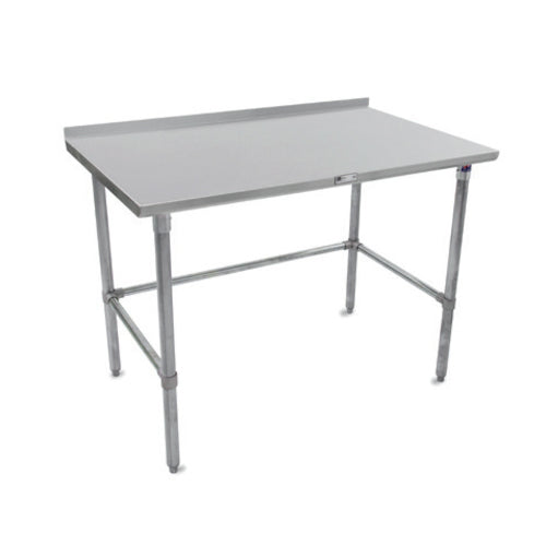 Work Table, 132"W x 30"D, 14/300 stainless steel top with 1-1/2"H rear up-turn, with Stallion Safety Edge front, 90° turndown on sides, stainless steel legs, side & rear adjustable bracing, adjustable bullet feet, NSF, CSA-Sanitation, KD
