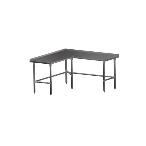 Work Table, L-shaped, 60"W x 60"D x 37-1/4"H overall size, 24" working depth, 16/300 stainless steel top with 1-1/2" H rear up-turn, with Stallion Safety Edge front, 90° turndown on sides, stainless steel legs, side & rear adjustable bracing, adjustable bullet feet, KD, NSF
