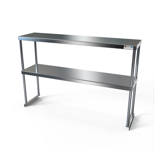 Overshelf, double, 60"W x 12"D x 31-1/4"H, from surface, adjustable lower shelf, square turndown edge, custom refrigerator counter mounting bracket included, 18/300 series stainless steel, NSF