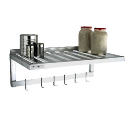 Shelf, with pot rack, wall-mounted, T-bar design, 60"W x 20"D, 500 lbs. shelf capacity, includes (8) pot hooks, aluminum construction, NSF , Made in USA