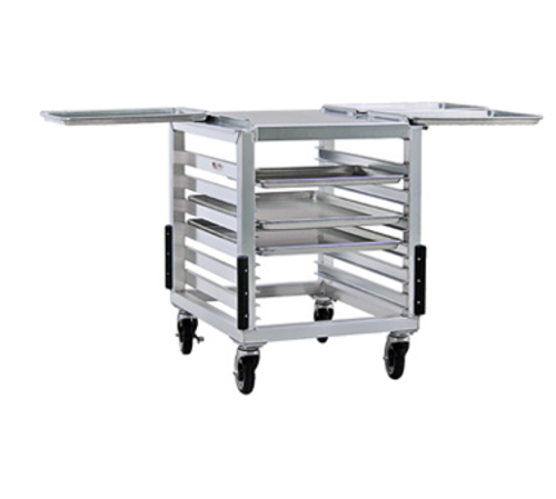 Slicer/Mixer Stand, mobile, aluminum construction, accommodates (24) 13" x 18" or (12) 18" x 26" pans, 1-1/2" spacing, aluminum top with outrigger channels, vertical corner bumpers, (4) 5" swivel casters with brakes, NSF, Made in USA