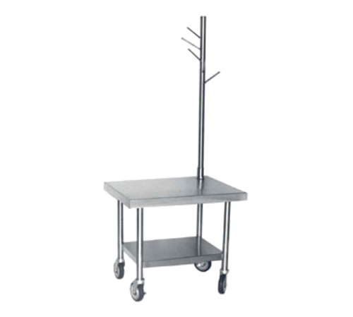 Mixer Equipment Stand, heavy duty, 25" x 30-3/8" x 26"H, one solid bottom shelf, welded stainless steel construction, 5 " all swivel casters, NSF