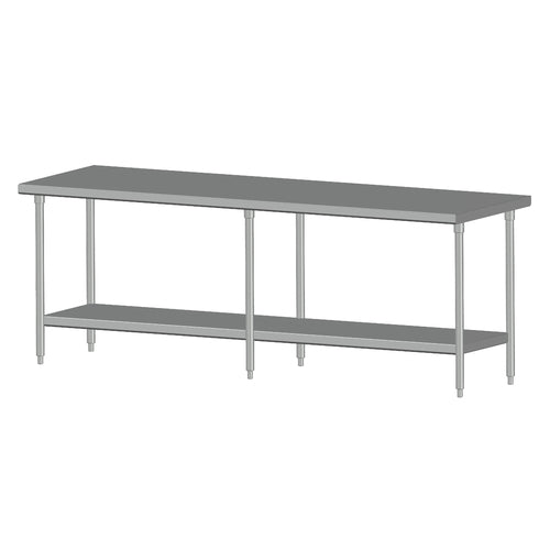 Universal Stainless Work Table, 120"W x 24"D, 14/300 series stainless steel top, without splash, with fixed stainless steel undershelf & frame