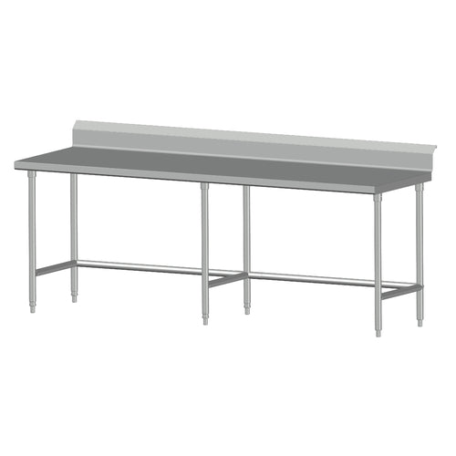 Universal Stainless Work Table, 120"W x 24"D, 16/300 series stainless steel top, 6" backsplash, with stainless steel legs, side & rear crossrails
